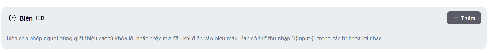 {{ten_bien}}.- Ví dụ: “Chào {{user_name}}, tôi có thể giúp gì cho bạn?”