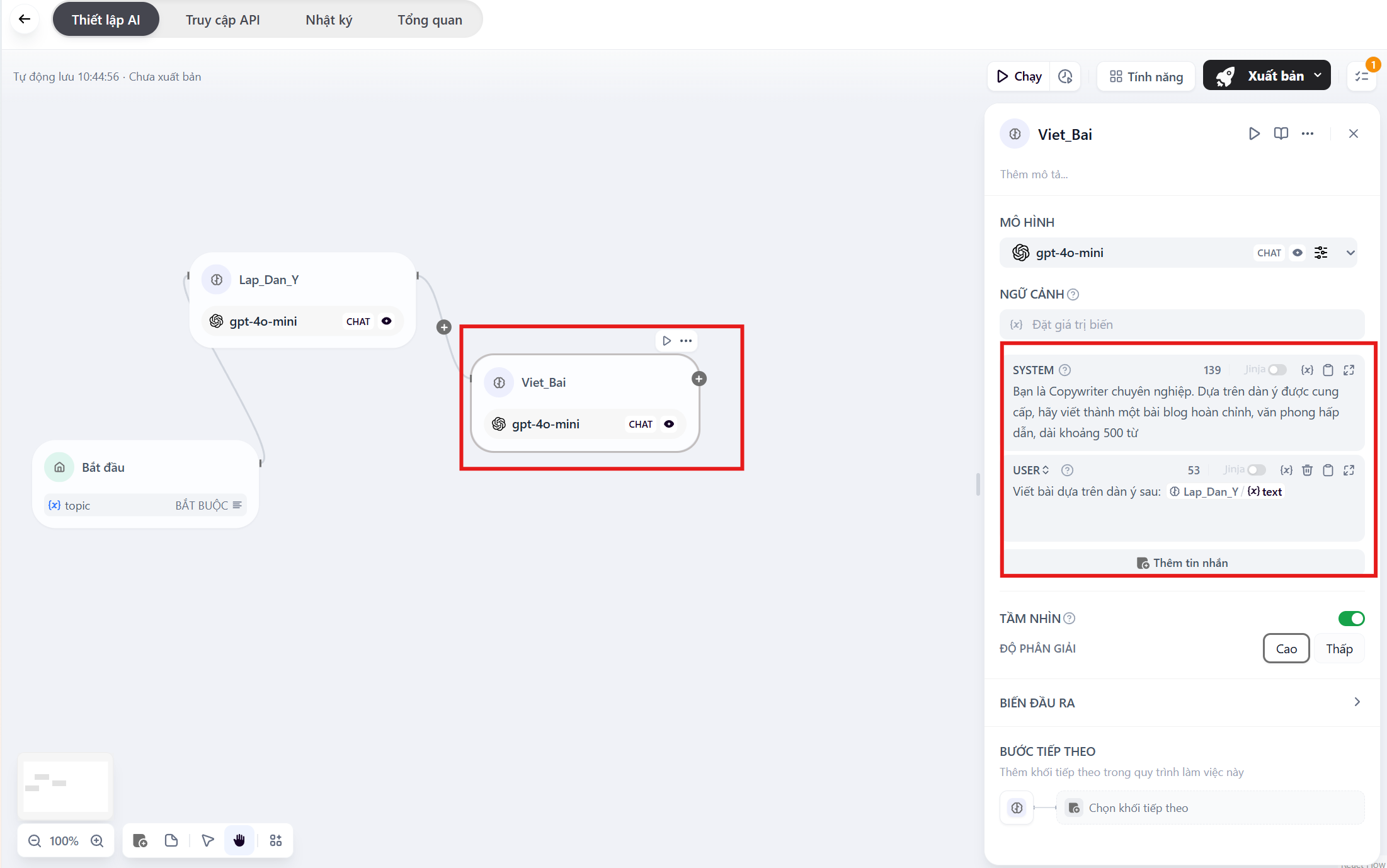 Bước 4: Tạo bước “Viết bài chi tiết” (Node LLM 2)
